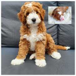 bought so much joy to our home, he is a very healthy and happy pup with the most fantastic personality. His coat is beautiful and wavy, just what we were looking for. We met Rufus and Bella, they are